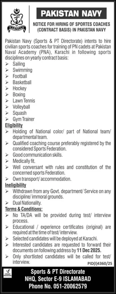 Eligibility Criteria for Pak Navy Civilian Jobs 2025